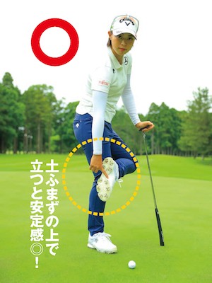 パットのアドレスもショットと同様に、いつも同じような構え方をできることが重要です。どんな状況でも同じようにアドレスすることができれば、安定した打ち方になり、またパターの特性を活かすことができます。