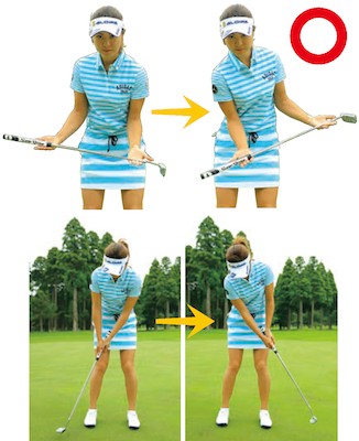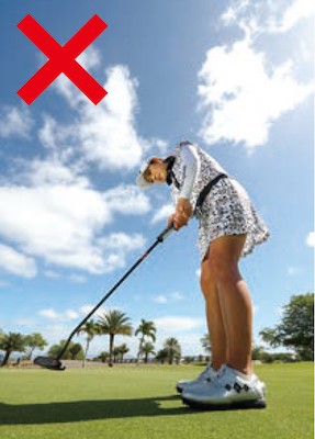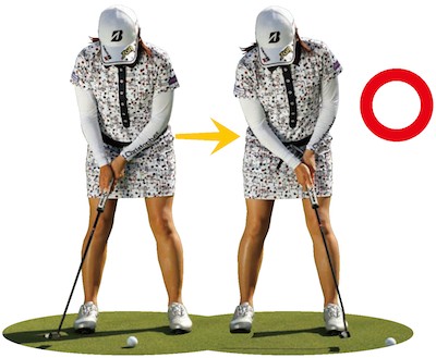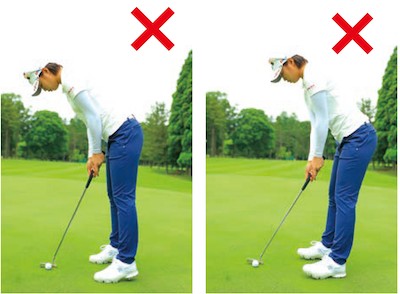 また前傾した際、背中を伸ばすプレーヤーもいれば、丸めるプレーヤーもいますので、あなたがアドレスしやすいカタチを見つけることが大切です。