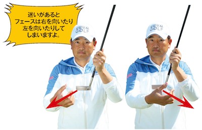 フェース面の向きが狂っていたら、仮に理想的なストロークができたとしてもボールは狙ったところへコロがっていきません。