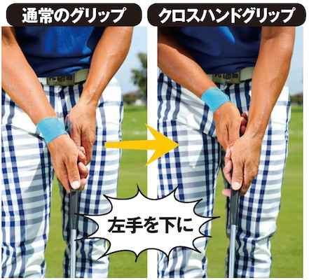 近年は「クロスハンドグリップ」もポピュラーになり、多くのプロゴルファーがこの握り方を採用しています。前述した「レギュラーハンドグリップ」は右手が下になりますが、「クロスハンドグリップ」は左手が下になるように握ります。
