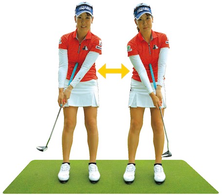 こうなるとフェース向きが変わってしまい引っかけたり、押し出したりすることになります。これを防ぐためには肩でストロークする意識を強くもつことがとても重要です。