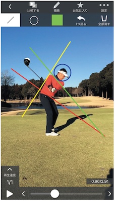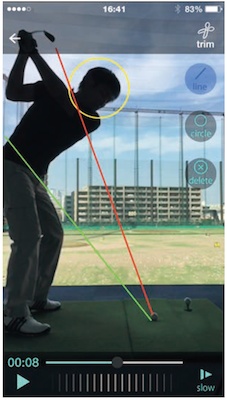 アドレスの姿勢の分析や、ヘッドの軌道をラインで表示してくれるので、セルフチェックにも使えます。
