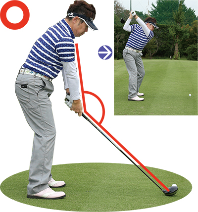 なかなかうまくならない人は、構えたときの「手首の角度」がバラバラになっているために、ショットの再現性が低下している可能性があります。しかも腕とクラブが一直線になってしまって角度がないと、ヨコ振りになりパワーをうまく伝えることができません。