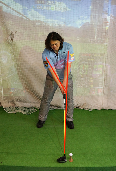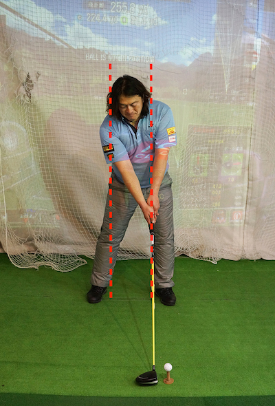 現在のアドレスは良いと思います。スタンスは肩幅か肩幅より少し広めぐらいにしておきましょう。