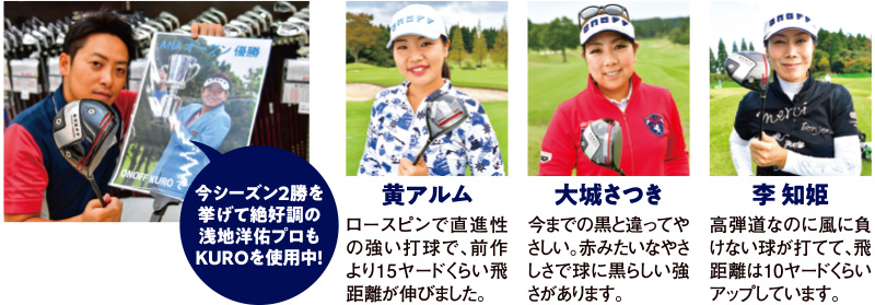 KUROを使用する契約プロが次々と好成績を出す中、飛ばし屋として知られる葭葉ルミもKUROに手を伸ばした。「スタンレーレディスから使っています。最大の決め手は構えやすさと打球感でした。それから、距離も出ます。キャリーで飛ばすという感じで、そこも気に入りました」( 葭葉ルミ)