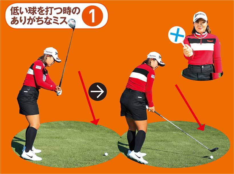 低い球を打つためにヘッドを低く出そうとして右肩が下がるのを防ぐため!