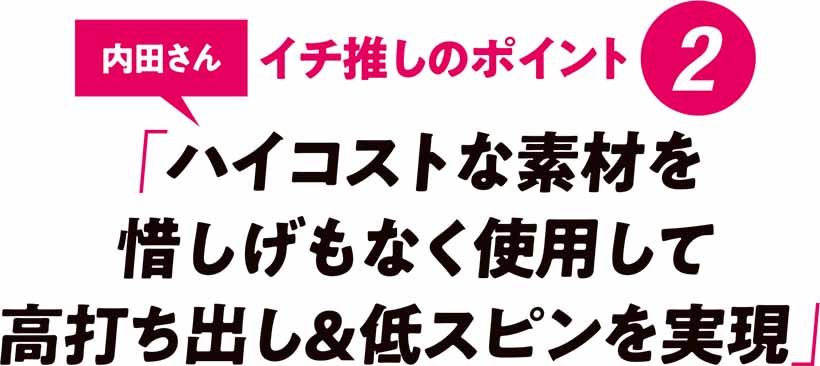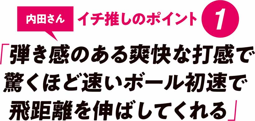 「今度のマジェスティ ロイヤルも飛びますよ。反発力がギリギリまで高められた『3Dウェイブフェイス』に加えて、カーボンクラウンによる高打ち出し・低スピンを生む低重心設計。そして、これまで以上に振りやすく、打点が安定する専用シャフトなど、マジェスティならではのテクノロジーが満載です」(内田さん)