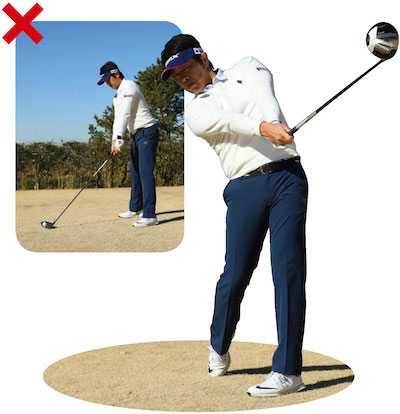 【NG】インパクトで手元が体から離れるとダフリ、トップの大きな原因に