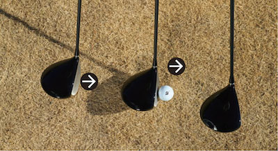 右に打ちたくないときはボール位置を真ん中寄りにするのが効果的。コンタクトの仕方が変わる。