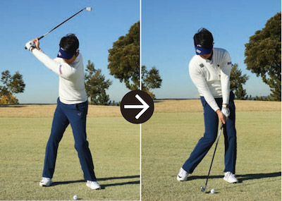 ヘッドの軌道をインサイド・アウトにしてスライス回転を軽減させる