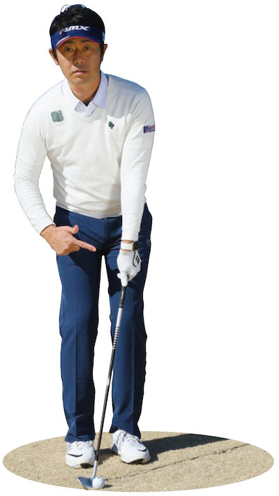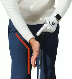 腕とクラブを同調させることで安定した距離感を出すことができる。シャフト、手元、腕が1本になるように構える。
