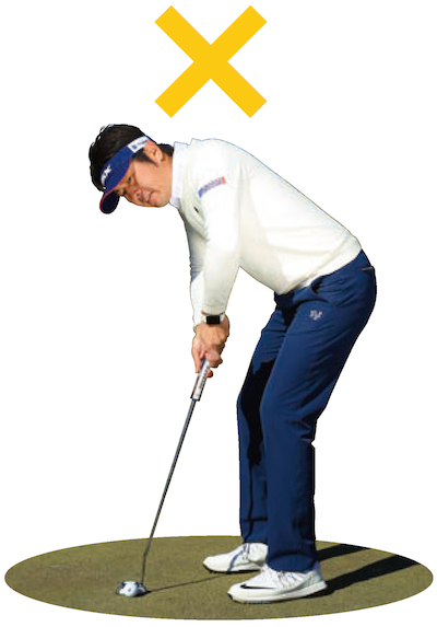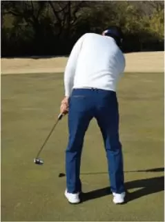 手先を使わずに肩でストロークする際に意識する箇所は背中。背中を使えるアドレスをまずは作ろう。