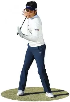 ボールを中に入れるだけで軌道はインサイド・アウトに。正確に振るために正確な構えが必要になる。