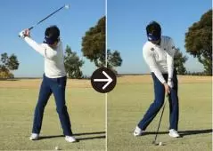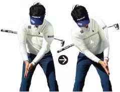体の前側ではなく背中側を意識することで肩の動きに腕とクラブが連動するようになる。