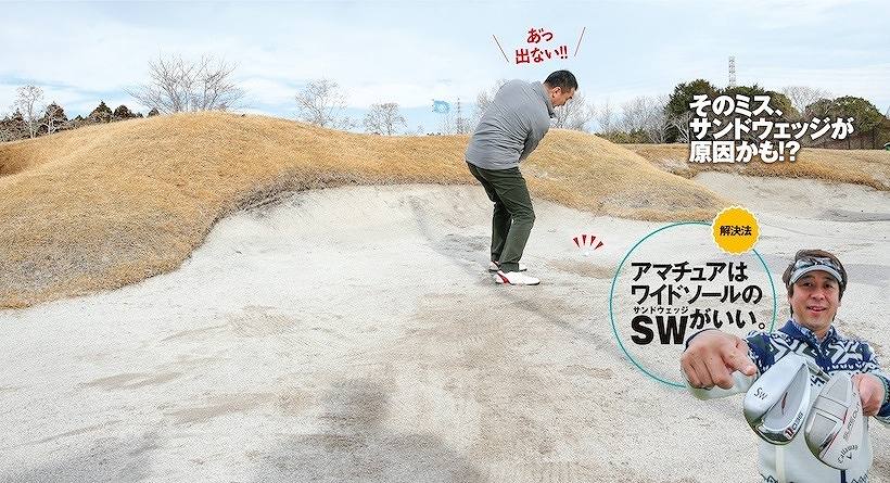 アマチュアは“飛ばない”からバンカーから出ない。だからワイドソールでヘッドが砂に潜るのを防ぎながら、ロフトは56度で球が前に飛びやすくすることが必要。
