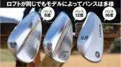- バンス角とロフト角の組み合わせはロフト角45〜49度は10度、ロフト角50〜54度なら10〜12度、ロフト角55度以上なら12度を選ぶ。