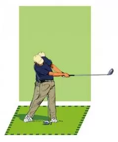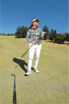 9番もしくは8番アイアンでしっかり振り抜いた時の着地点をチェック。