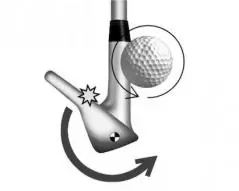 重心位置より高い位置でインパクトするとヘッドが上を向き、その反動でボールのバックスイングがほどけてしまう。