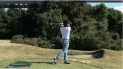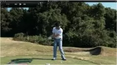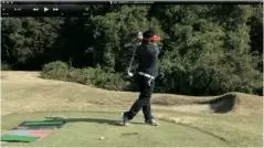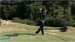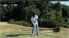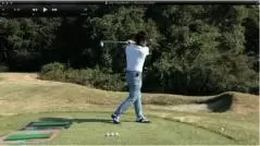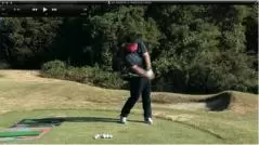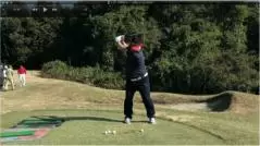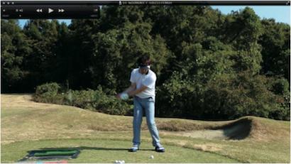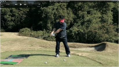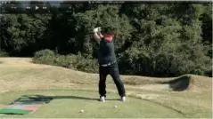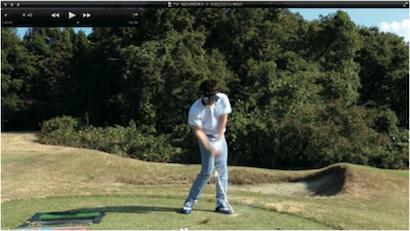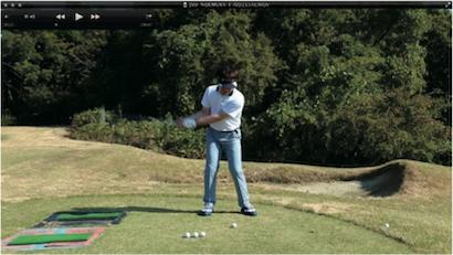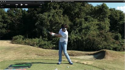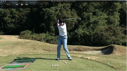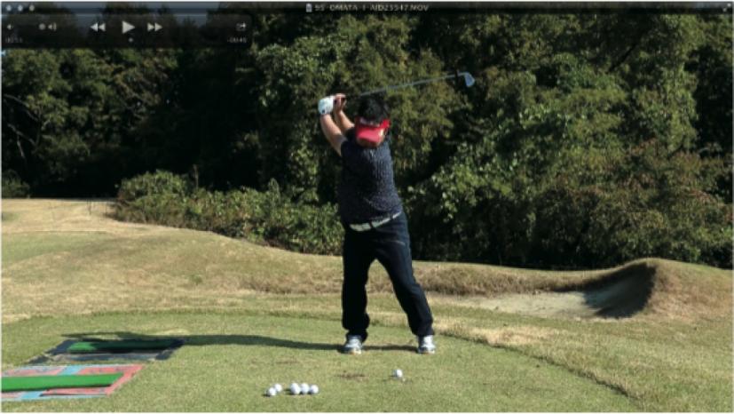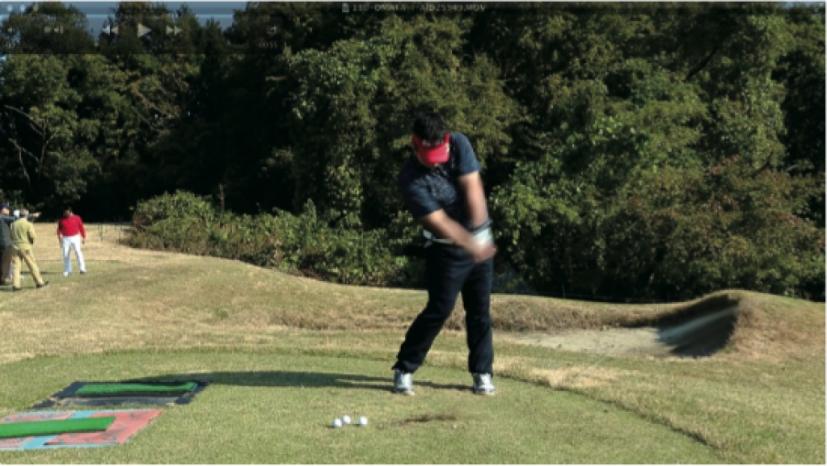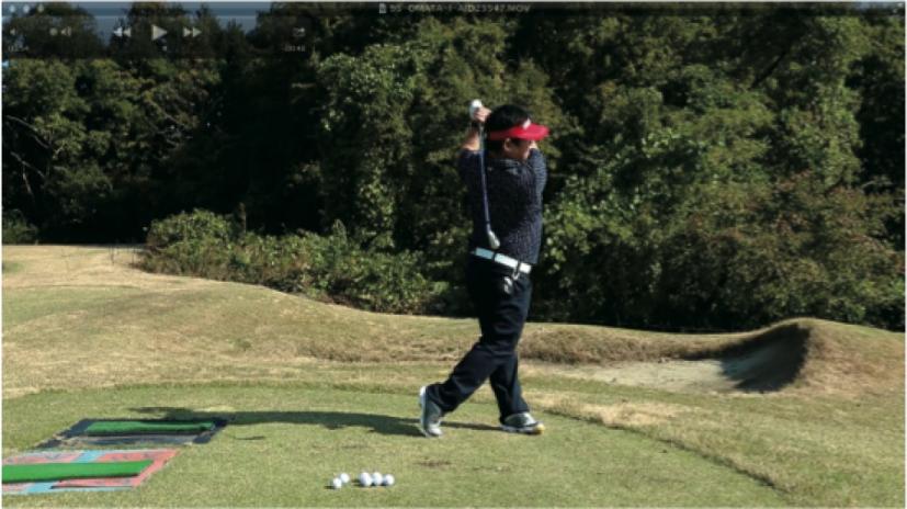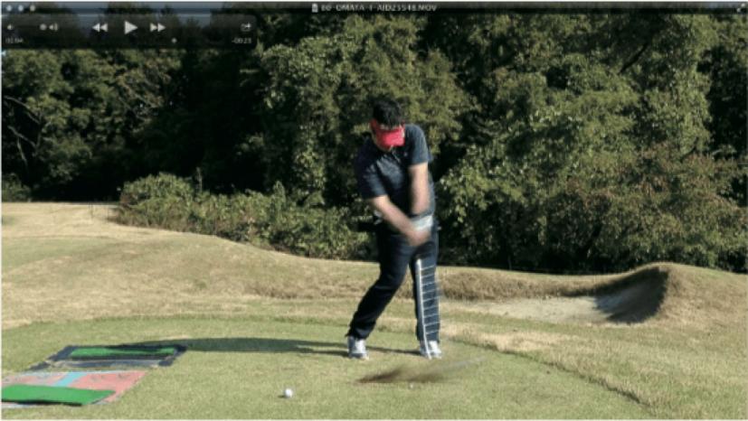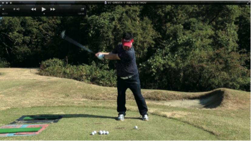 (△)たまに、ダウンスイングで減速し、合わせる動きが出るとミスショットに。