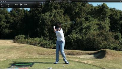 ダウンスイングで急加速する能村さんは「94」