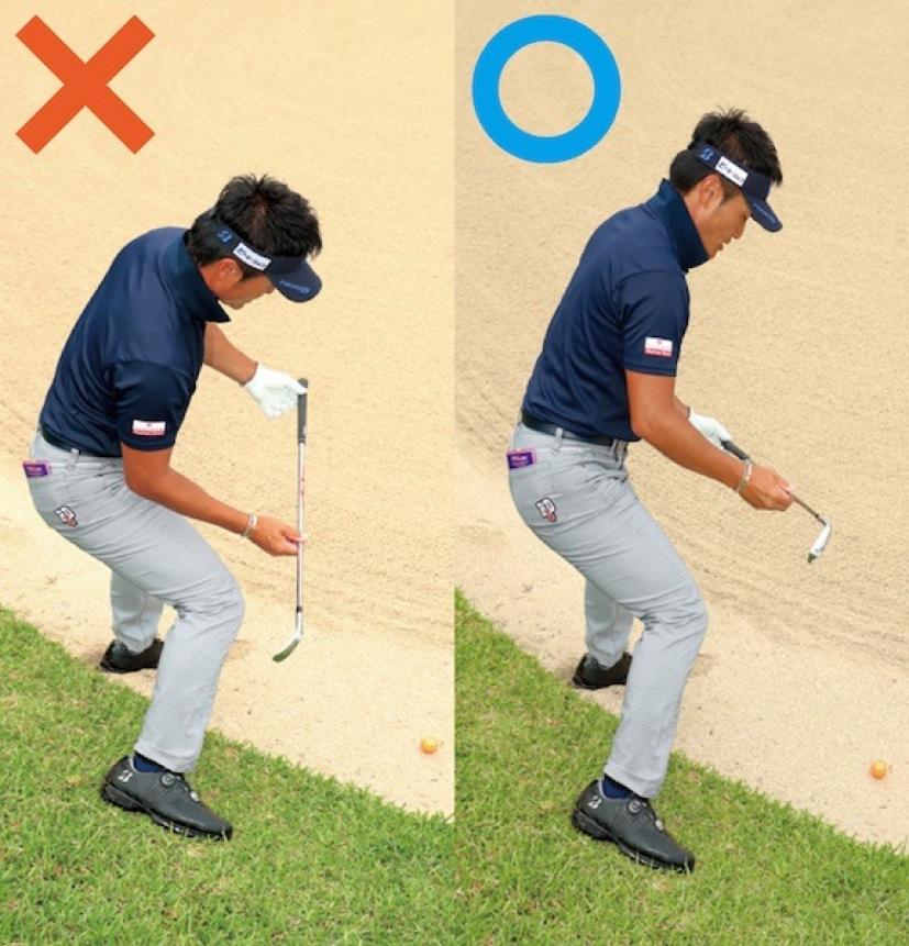 ダウンブロー気味にヘッドを入れて砂を薄くとる
