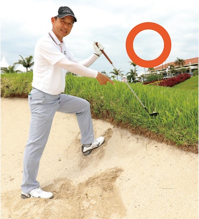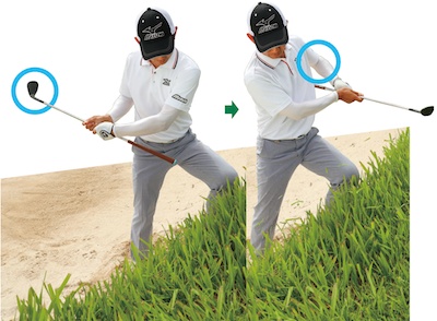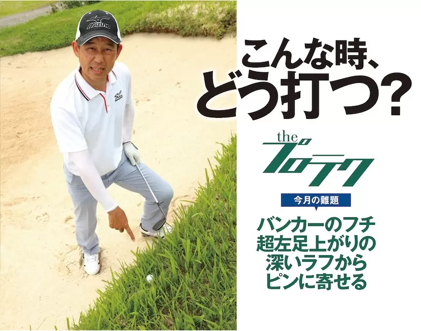 バンカーのフチ超左足上がりの深いラフからピンに寄せる打ち方(一連の流れ)