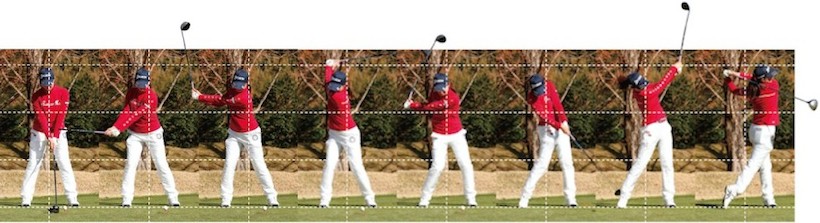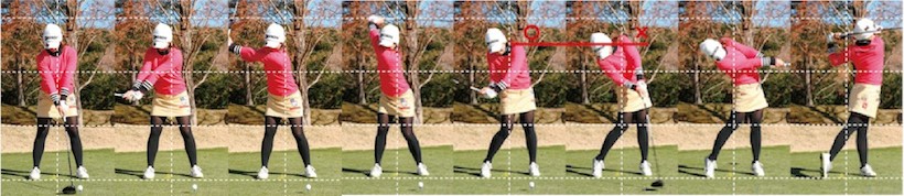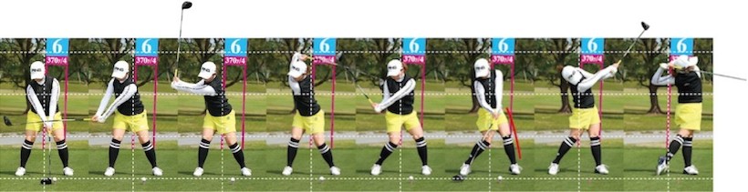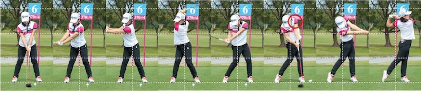 ガマンして、トップの肩の高さ(4カット目)を保ってダウンスイングしてインパクトを迎えられると、もっとヘッドが走るんじゃないかしら。手先(クラブ使い)が器用そうに見えますね。