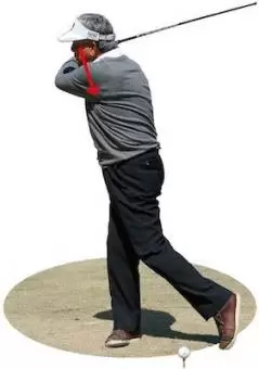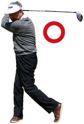 飛球線方向にクラブを真っすぐ出せと言われますが、本来ならヘッドはインパクト直後に体から一番遠い位置にあるもの。それ以上遠くには出せないのでインサイドに振るのが正しいフォローです。