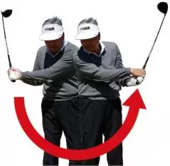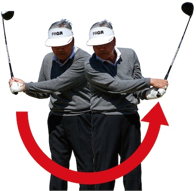 ボディターンを意識しすぎて腕が振れなくなっている人もいますが、実際にクラブを振っているのは腕です。とくに体の硬いシニアの場合は、できるだけ腕を使って振った方がヘッドスピードが上がります。