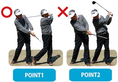 《お尻の動きを止めずにフォローを大きく》