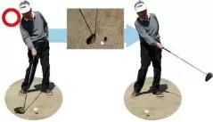 2.ボールの30センチ手前からヘッドを真っすぐ通すつもりで振ればきれいな円が描ける。