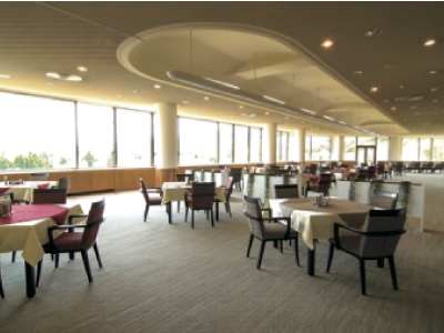 男性用、女性用共に「天然温泉・露天風呂」。食についても、「テラスレストラン」「和風レストラン」「ワインハウス」など、和洋の異文化を巧みに組み合わせた空間で味わう、フレンチをベースとした地元の食材をふんだんに生かしたオリジナルメニューなど、楽しいひとときに華を添える。宿泊施設も完備され、「6階建てのホテル」「オリーブ」「メイプル」など、洋室62室、和室8室、105名収容できる宿泊施設も、それぞれに特徴があり充実している。