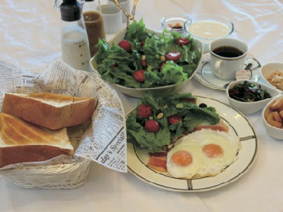 宿泊の朝は「厚切りトーストとボウルサラダ」