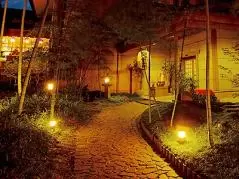 竹林に石畳回廊「クラブハウス玄関」