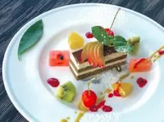 プレー後は、インスタ映えするデザート『運命の3番ホール』を楽しんで頂きたい。名物ホールの西3番をデザートにモチーフし、ティグランドからグリーンまで、すべて食べられる。レストランはカフェスタイルで営業、女性の人気メニューは『ひたち鶏のグリルセレクション』ソースは〈ピリ辛トマト〉〈ハニーマスタード〉〈ガーリックオニオン〉の3種類から選べる。