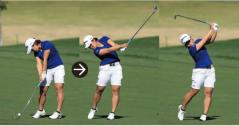 切り返しでは間が作れて、インパクトはヘッド・ビハインド・ ザ・ボール。そして、頭が上下左 右にブレることがない。フォローでは右腕が伸びきり、クラブが遠心力で気持ち良さそうに振られています。