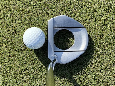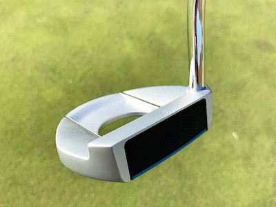 ゴルフコースの練習グリーンで試してみましたが、まずは打感と打音。打感は確かに本当に柔らかい。樹脂系フェースならではの柔らかさで打っていて気持ちがいいです。しかし柔らかの中にも芯があるような打感で頼りなさというのは感じないですね。そして打音。正直言って僕には「トゥん」とは聞こえません。打音というのはなかなか言葉に表すのが難しいですが、あえて表すなら僕には「コクぅん」って感じでしょうかね。どっちにしろあまり高い音ではないです。ショートパットの時は打音は控えめですが、ある程度の長さのパットの時は打感がしっかりすると同時に打音も大きくなり、距離感の出しやすさは感じました。