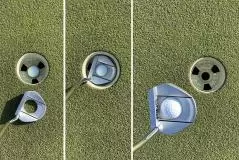 そして問題のボールを拾い上げる機能です。カップの縁にヘッドをぶつけてしまうんじゃないかと心配しましたが、そんなことはなく結構スマートにスッと拾い上げることが出来ました。ほとんど腰をかがめることなくボールを拾えるので、腰痛持ちの人には良いかもしれません。しかしこのパターのことを知らない人だと、同伴競技者がカップインのあとにいきなりカップの中にパターヘッドを差し込んだらかなり驚くでしょうね。でも意外にもなかなか使える機能だな~と思いました。