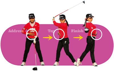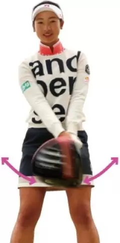 よく、飛ばしたいならアドレスでお腹に力を入れる。と聞きますが、アドレスだけでは、スイングは安定しません。ずっとおヘソに力を入れるようにしましょう。
