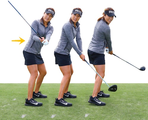 《テークバックで左手が外れないように!》