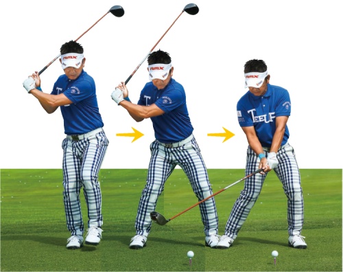 今度は両手でその位置までクラブを振り上げ、位置を確認する。