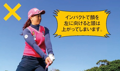 ▼インパクトで顔を左に向けると頭は上がってしまいます。