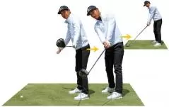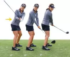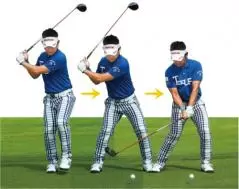 飛球線後方に顔を向けたままクラブを下ろせば、手をいくらはやく下ろしても、体は開きません。そして、手だけが先に動くということがなく、ヘッドも一緒に下りてきます。