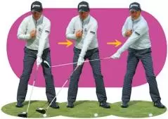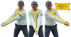 スイング中に体の回転と手を一緒に動かすことでスイング軸が保たれます。その場でクルッと回ることができ、フェースが返ってボールがつかまるようになるのです。