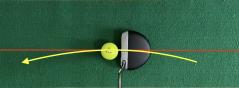 このように動かすことでインパクトが点ではなくゾーンになるため方向性がよくなることはもちろん、ボールの芯とパターヘッドの芯が衝突するため、芝目などの影響を受けにくいコロがりを得られます。