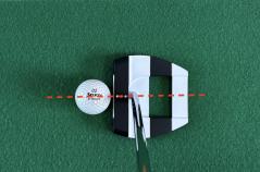 芯の位置はパターヘッド上部にあるサイトライン(マーク)の部分になります。ヘッドアップも芯を外す一因です。ボールがコロがって行くまで、ボールの置かれていた場所を見続けるように意識しましょう。