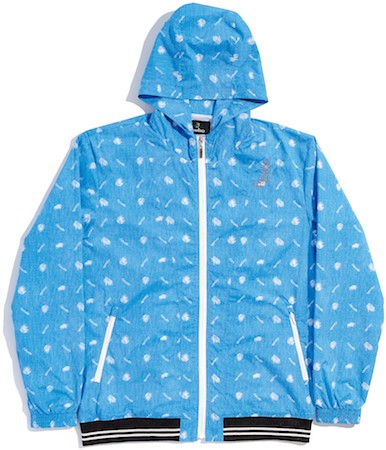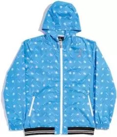ヤシの葉柄が楽しげなパーカー。サラリとした生地は撥水性があり、急な雨でも安心。裏地はメッシュになっており、汗をかいても快適な着心地。
