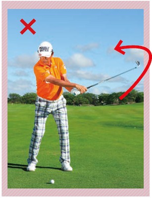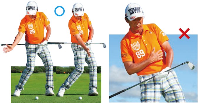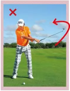 ▼体が止まることで手打ちになってフェースが必要以上に返ってヒッカケてしまう