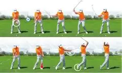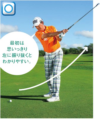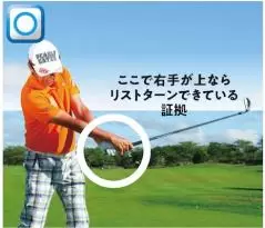 インパクト付近で無理に手首を返そうとするのではなく、体の横でL字を作るだけで、自然と過不足ない理想的なリストターンがマスターできる。