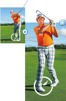 体重が右に残ることなく左足に乗って振り抜くことができれば、上体が傾かずにクラブがしっかり上から下りてくる。この理想的なダウンブロー軌道が生まれることで、ダフることなく球をクリーンヒットすることが可能に。